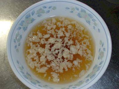 Step 1: 국물을 그릇에 따라 싱크대 옆에 2분 식히기(80도→50도).