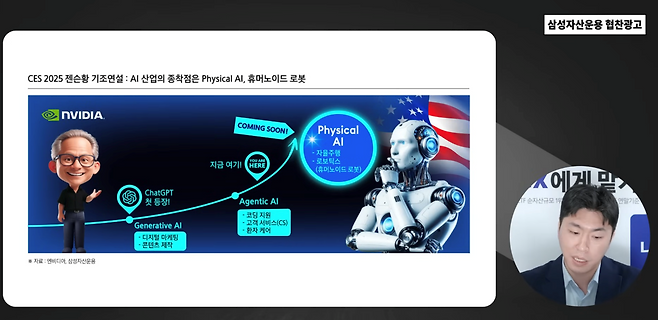 지금까지의 AI는 대부분 생성형 모델 중심으로 소프트웨어 안에서만 작동해 왔습니다. 하지만 2025년 들어 AI는 실질적인 ‘움직임’을 가지기 시작했습니다. CES 2025에서 엔비디아의 젠슨 황 CEO는 AI 산업이 생성형을 넘어 에이전틱, 궁극적으로는 피지컬 AI로 진화할 것이라고 언급했습니다. 이 가운데 피지컬 AI의 대표주자로 부상하고 있는 것이 바로 인간형 로봇, 휴머노이드입니다.