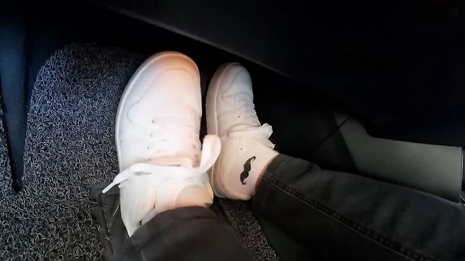 시동을 끄고 키 on만 한 상태에서도 브레이크를 계속해서 밟아서 딱딱한 상태를 만들었습니다. 브레이크를 밟으려면 정말 많은 힘을 줘야 하는 상황에서도 브레이크 등은 밟는 상태만큼 잘 들어오는 모습을 확인할 수 있습니다.