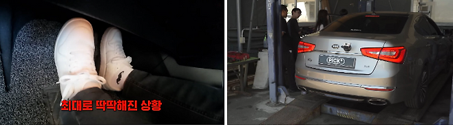첫 번째 실험을 진행했던 차량이 아닌 다른 차량으로도 급발진과 같은 상황을 만들어서 풀 악셀을 밟은 후 ECU를 제거하고 브레이크를 밟았을 때에도 브레이크 등은 잘 들어오는 모습을 확인할 수 있었습니다.