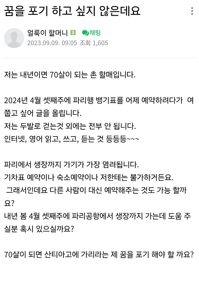 꿈을 포기하고 싶지 않은 70살 할머니(저도 이렇게 살고싶네요..)