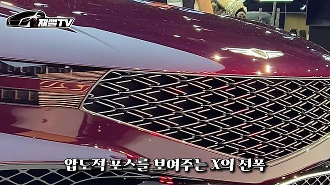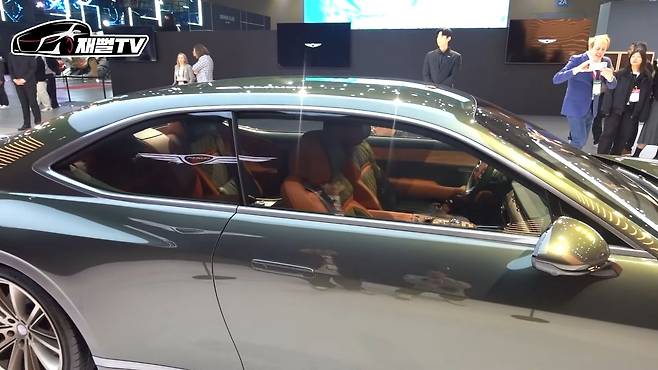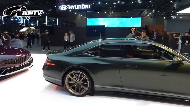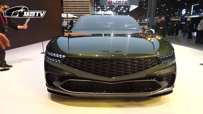 제네시스의 시그니처 디자인 요소인 두 줄 라인이 전면부에서 이어지며, G90의 영향을 일부 받은 듯한 고급스러운 느낌을 전달한다. 쿠페와 컨셉카의 요소를 조화롭게 담고 있으며, 특히 선보인 그린 색상이 차량의 우아함을 한층 돋보이게 한다.
