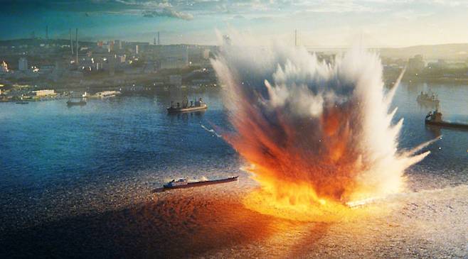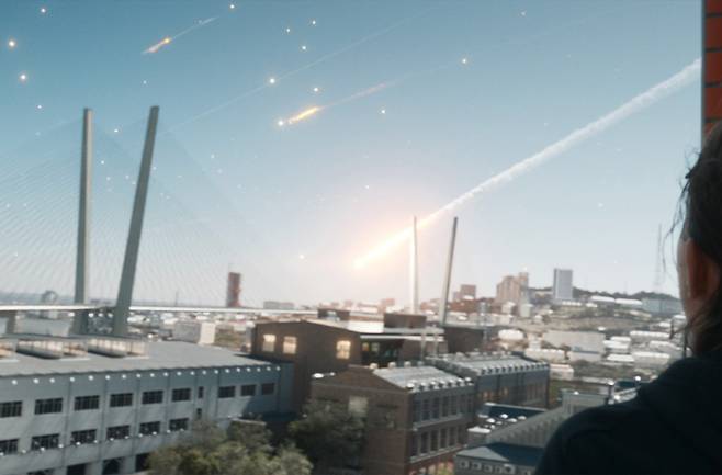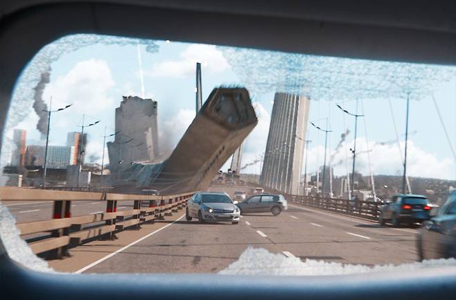 그뿐만 아니라 운석 충돌로 생긴 2차 피해 중 바다에 떠 있는 유조선에 발생한 화재 장면, 운석 충격파로 생긴 먼지 폭풍에 경찰차가 날아가는 장면, 황폐해진 도시 등 영화 곳곳에 섬세한 CG 기술로 만들어 내며 영화의 재미와 보는 맛을 한층 더 살리죠.