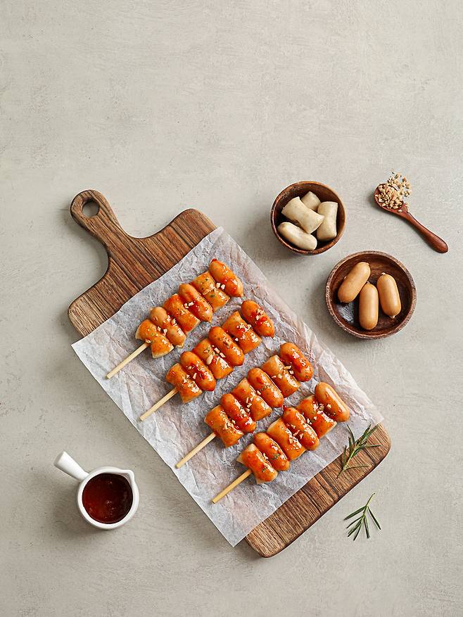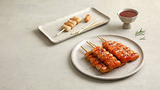'닭신 닭가슴살 소떡소떡'은 흰 가래떡 대신 현미로 만든 떡을 사용했어요.