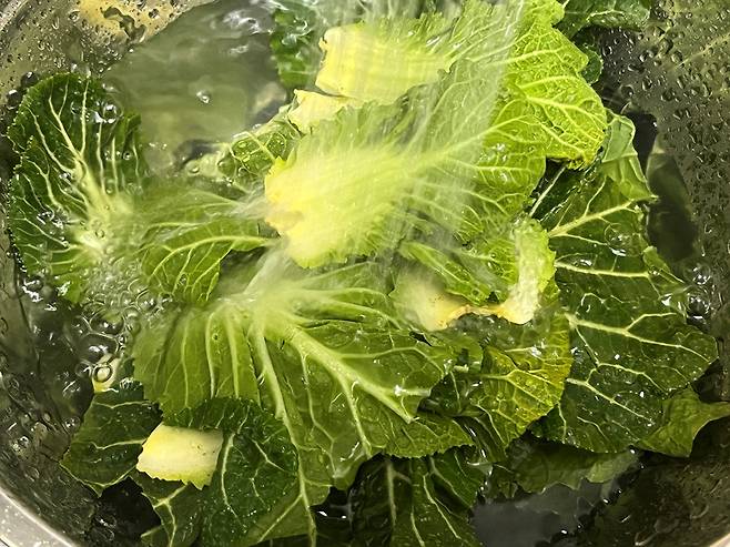 봄동은 뿌리 부분으로 갈수록 흙이 많이 묻어있어서 세척할 때 꼼꼼하게 해줘야 합니다. 봄동은 흐르는 물에 여러 번 씻고, 줄기 부분은 손으로 문질러 이물질을 최대한 제거합니다.