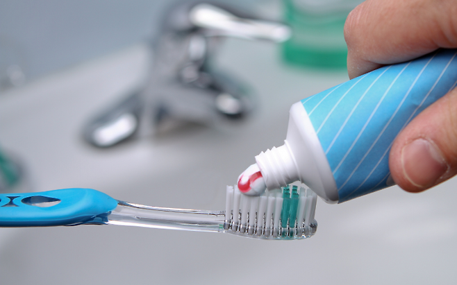 치약에는 연마제와 계면활성제가 들어 있어, 물때와 비눗때를 제거하는 데 효과적입니다. 수세미나 칫솔에 소량의 치약을 묻혀 세면대, 수도꼭지를 문지르면 하얗게 들러붙은 물때가 손쉽게 제거되고 광택까지 살아납니다.