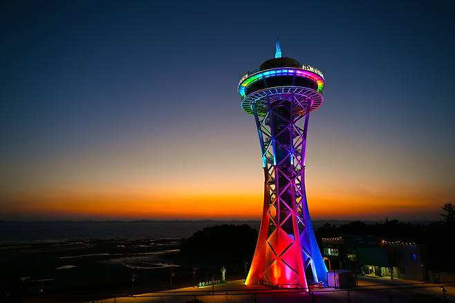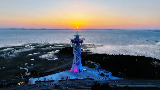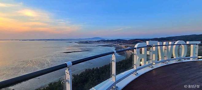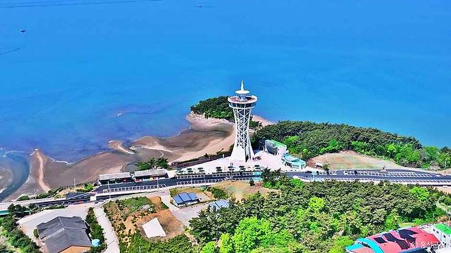 천수만이 한눈에 내려다보이는 '홍성스카이타워'는 서해의 리아스식 해안선과 갯벌이 선사하는 웅장한 풍경을 감상할 수 있는 충남 유일의 전망 명소다.