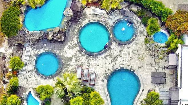 🪨 제주 돌담·땅콩 모양 디자인 탕겨울에도 비교적 따뜻한 제주 기후 덕분에, 야외에서 즐기는 온천욕 부담이 적다는 점이 큰 장점이다.