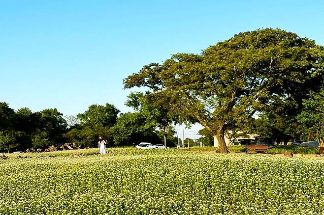 드넓은 메밀밭, 그 사이를 지나는 좁은 오솔길, 돌담 너머로 불어오는 봄바람까지, 모든 것이 한 폭의 수채화처럼 느껴진다.