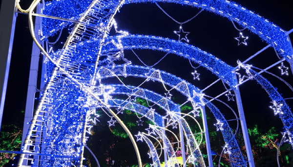 이천 덕평휴게소 뒤편에 위치한 별빛정원은 영동고속도로의 폐도 구간을 활용해 조성된 일루미네이션 테마파크인데요. 각종 미디어 아트 작품과 꽃빛 산책로, 반딧불이 숲 등 다양한 포토존이 마련되어 있어 환상적인 야경을 감상할 수 있는 명소입니다.