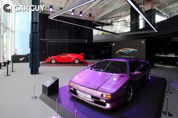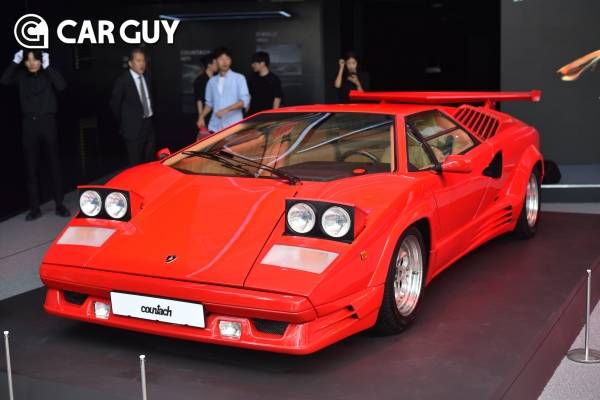 왼편에 자리한 쿤타치는 1971년 제네바 모터쇼에서 콘셉트카로서 처음 공개된 모델이다. 사람 나이로 치면 53세로 중년을 바라볼 나이다. 쿤타치는 현행 람보르기니까지 이어지는 정체성을 만든 모델로서 의미가 깊다.