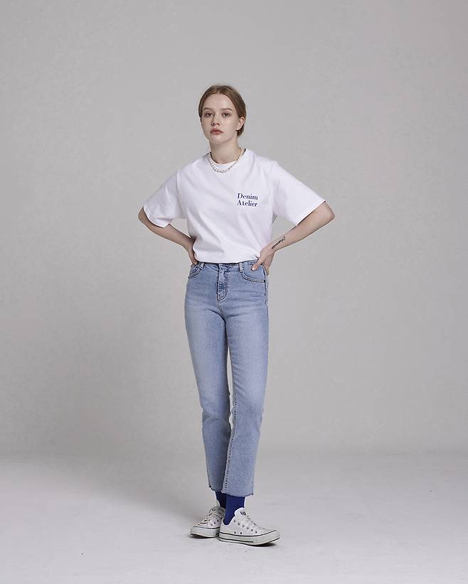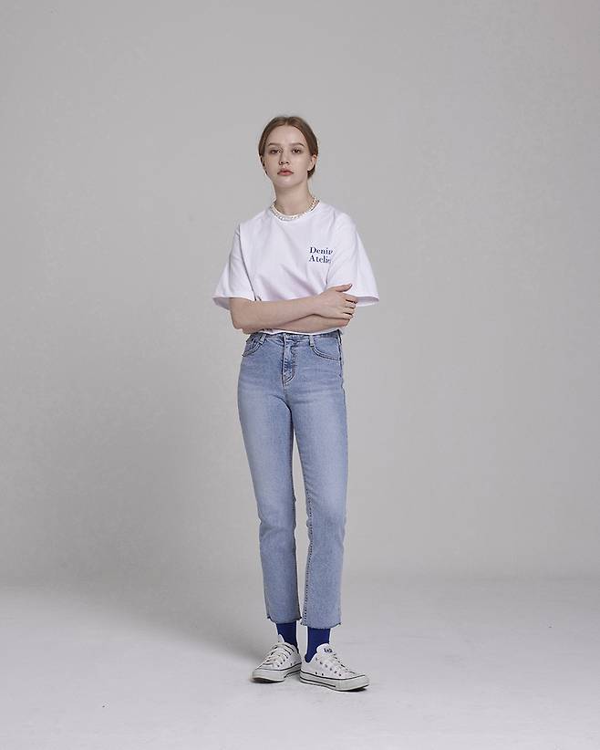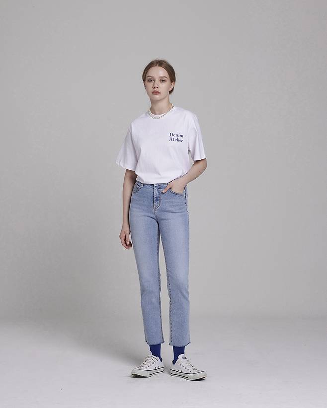 발목까지 슬림하게 떨어지는 스트레이트 핏 커팅 데님인데요.