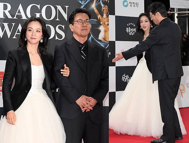 탕웨이와 김태용 부부가 청룡영화상 레드카펫을 로맨틱하게 물들였습니다.