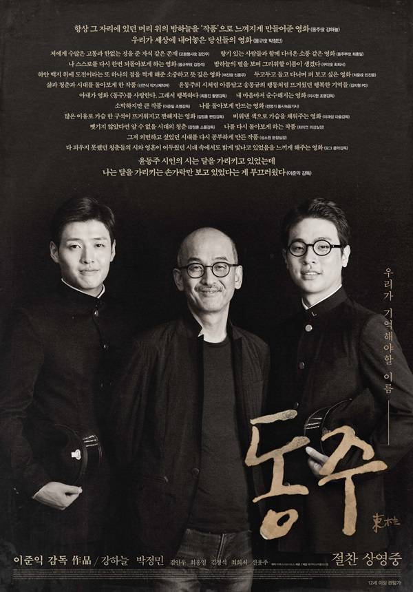 '동주'는 언어도 꿈도 허락되지 않았던 1945년, 평생의 친구이자 라이벌이었던 시인 윤동주와 독립운동가 송몽규의 빛나던 청춘을 담은 영화이다.
