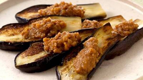 가지를 살짝 구운 후 된장 양념 발라 구워낸 반찬