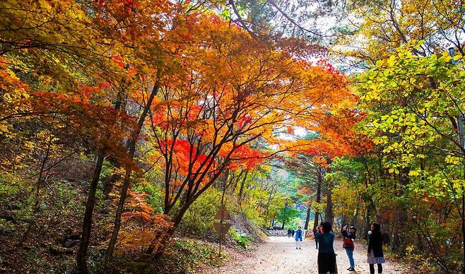 단풍을 즐기며 삼봉약수의 청량한 물맛을 함께 느낄 수 있어, 자연과 건강을 동시에 누릴 수 있는 코스다.