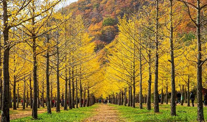 이곳은 개인이 30여 년 동안 정성스럽게 가꾼 사유지로 약 5m 간격으로 심어진 2,000여 그루의 은행나무가 만들어내는 풍경은 매년 가을마다 수많은 여행객의 발길을 불러모은다.