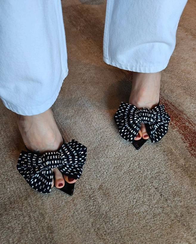 특히 땡땡이 하이힐 샌들이 마음에 든 듯 만족한 미소를 드러내 눈길을 끌었다.