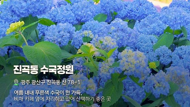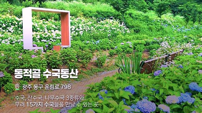 광주 동구 운림로 798에 있는 ‘동적골 수국동산’은 수국, 산수국, 나무수국을 포함해 총 15가지 수국 품종이 조성된 정원이다.