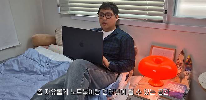 피곤하면 침대에서 일하기도 해요. 바로 옆에서 자면 되니까요. 디지털 노마드가 되는 방법이 공식처럼 정해진 건 아니지만, 제가 생각할 때는 자유롭게 노트북이나 인터넷이 될 수 있는 공간, 즉 오프라인에 구속받지 않는 직종이라면 누구나 노마드가 될 수 있다고 봅니다.