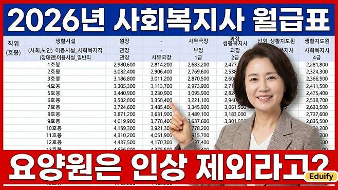 이들은 국가 예산이 아닌 ‘장기요양 수가’로 운영되기 때문에 기관장의 재량에 따라 임금이 결정됩니다. 따라서 같은 사회복지사 자격증을 갖고도 근무지에 따라 ‘임금 격차’가 벌어지는 구조적 모순은 2026년에도 계속될 것으로 보입니다.