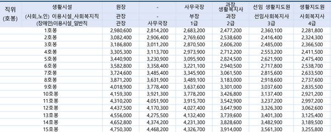 장기요양 수가 체계를 따르는 요양원과 재가센터는 이번 호봉표가 적용되지 않습니다