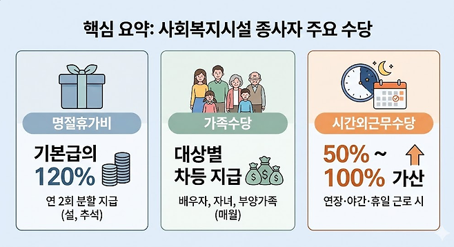 2026년부터는 유급병가 기준이 공식화되어 눈치 보지 않고 쉴 수 있는 권리가 보장됩니다. 또한 5인 미만 시설에도 야간수당 가산분이 최초로 예산에 반영하는 등 사각지대 해소에 나서고 있습니다