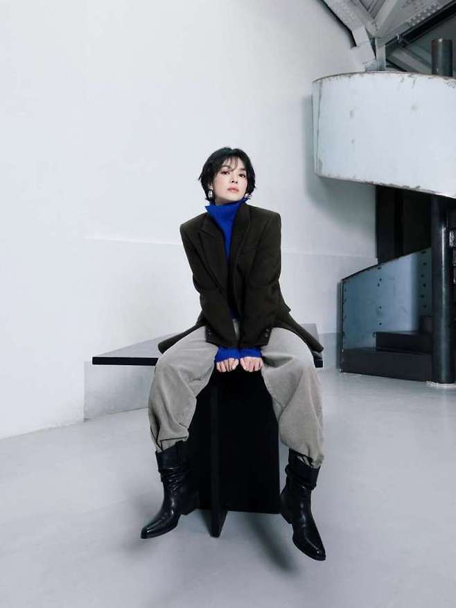 배우 송혜교가 최근 공개된 화보에서 파격적인 단발 헤어스타일과 세련된 오버사이즈 패션을 선보이며 새로운 변신을 알렸다. 턱선을 드러내는 짧은 단발머리는 자연스러운 볼륨감과 매끄러운 질감이 특징이다. 앞머리는 가볍게 내리고 층이 많지 않은 스타일로 도시적이고 세련된 인상을 완성했다.