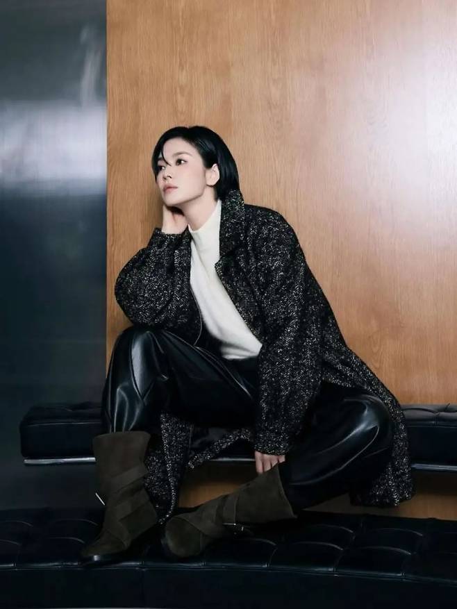 이번 송혜교의 스타일링은 기존 청순한 이미지에서 벗어나 독립적이고 강인한 인상을 부각시키며 트렌드와 고급스러움을 동시에 보여준다. 세련된 단발 헤어와 과감한 오버사이즈 룩이 만나 한층 더 성숙한 무드를 완성했다.