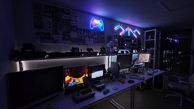 왼편 타공판에는 게임 소프트웨어가 걸려있고