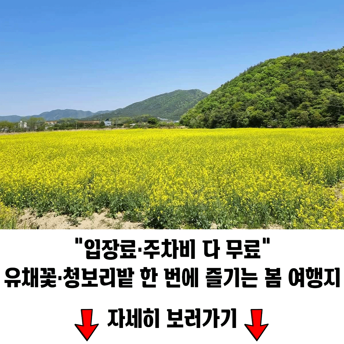 유채꽃밭은 ‘경관보전 직불사업’을 통해 조성된 곳으로, 트레킹 코스로도 인기가 높다. 바람에 따라 하늘하늘 춤을 추는 유채꽃 사이로 걷다 보면, 사진보다 더 진한 감동이 마음에 남는다.