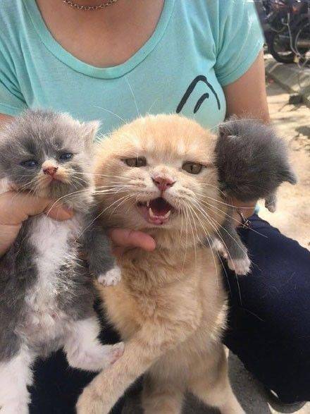 문제의 고양이는 "이 녀석들, 내 새끼가 아닙니다! 놔주십시오!"라며 격렬하게 항변했습니다.