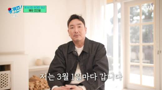 조진웅은 “내가 ‘대장 김창수’를 할 때 백범로에 살았었다. 그 길 따라 쭉 가면 김구 선생님의 묘가 있다”라며, “그래서 거기를 나는 3월 1일마다 간다. 이번에도 갈 거다. 작년에는 내 딸 데리고 갔었다”라고 밝혀 놀라움을 자아냈다.