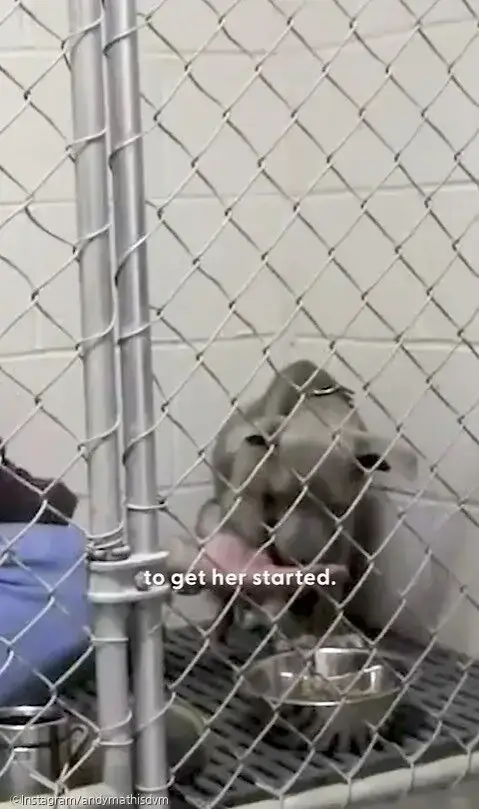 녀석은 보호소 케이지에 들어온 이후에도 몸을 웅크린 채 먹기를 거부했다. 수의사인 앤디 메티스 박사는 그레이시를 위해 뭔가 해야 한다는 걸 알았다.
