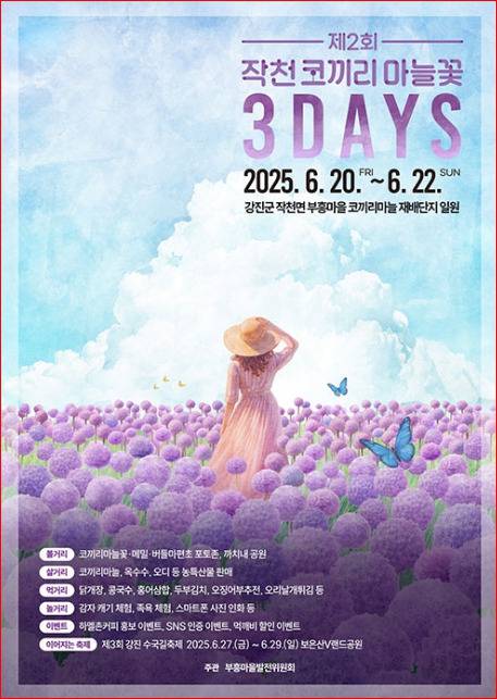 "보랏빛 코끼리마늘꽃이 만드는 6월의 특별한 3일, 강진 작천 부흥마을에서 여름의 시작을 만나보세요."