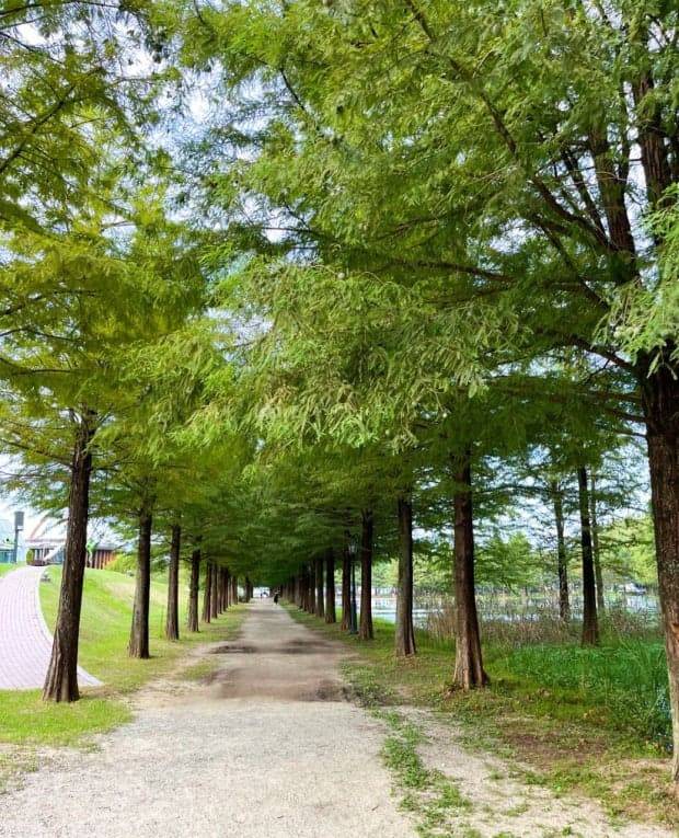 메타세쿼이아 길은 담양을 대표하는 또 하나의 명소로, 1970년대 가로수 조성사업 당시 심어진 묘목들이 지금은 하늘을 덮을 만큼 울창한 숲길을 이루고 있습니다. 약 2.1km 길이의 흙길로 조성된 이곳에서는 맨발로 걷는 산책도 가능해 자연과 더욱 가까워질 수 있어요.