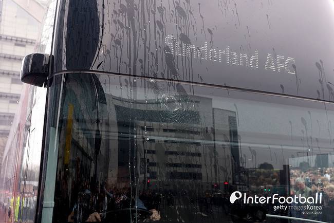 선덜랜드 팀 버스 역시 피해를 입었다. 경기장 도착 과정에서 앞유리에 큰 균열이 발생했으며, 현장에서는 부상자가 발생해 의료진이 응급 처치에 나서는 장면도 확인됐다.