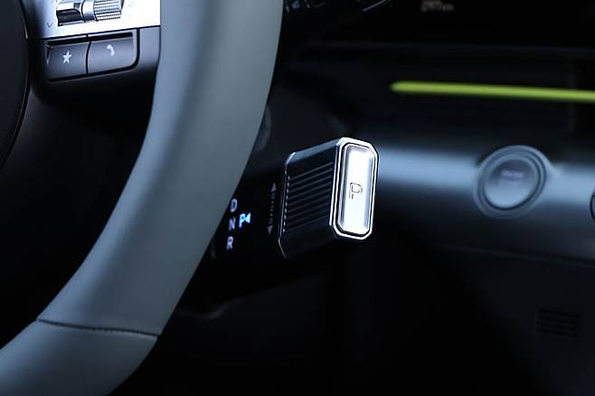 센터 스택에 있던 기어 실렉터는 스티어링 칼럼 오른쪽에 칼럼 시프트 타입으로 바뀌었다. 전자식이기에 가능하다는 점 외에 앞으로는 물리적인 주행성보다는 인터페이스가 경쟁력이라는 것을 보여 주는 내용이기도 하다. 앞쪽에 두 개의 C형 USB 포트가 있다. 이 부분에 기어 실렉터가 없어져 활용도가 높아지고 있다는 점도 오늘날 등장하는 모델들의 특징이다.