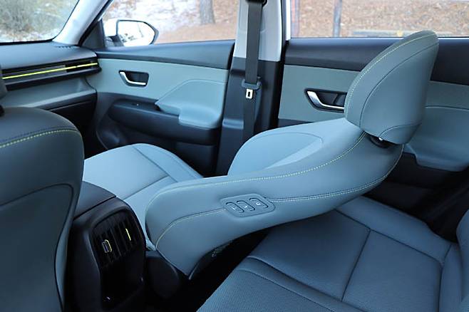 시트는 5인승. 시트 포지션이 높은 것은 여전하다. 여성 운전자들에게 어필하는 포인트다. 프리미엄부터는 통풍 기능, 인스퍼레이션에는 릴렉션 시트를 채용한 것이 눈길을 끈다. 시트 쿠션 왼쪽에 있는 버튼을 한 번만 누르면 누울 수 있는 상태로 펼쳐진다. 소형차 등급에서 기대 이상의 장비이다. 동승석 시트백 왼쪽의 뒷좌석에서 시트 위치를 조절할 수 있는 버튼을 설계해 상품성을 높이고 있다. 테일게이트를 전동식으로 한 것도 마찬가지이다.