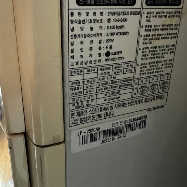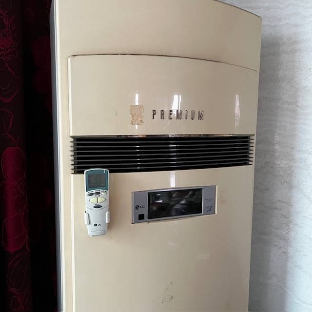 거실에 98년도산 정속형 스탠드 에어컨이 있습니다