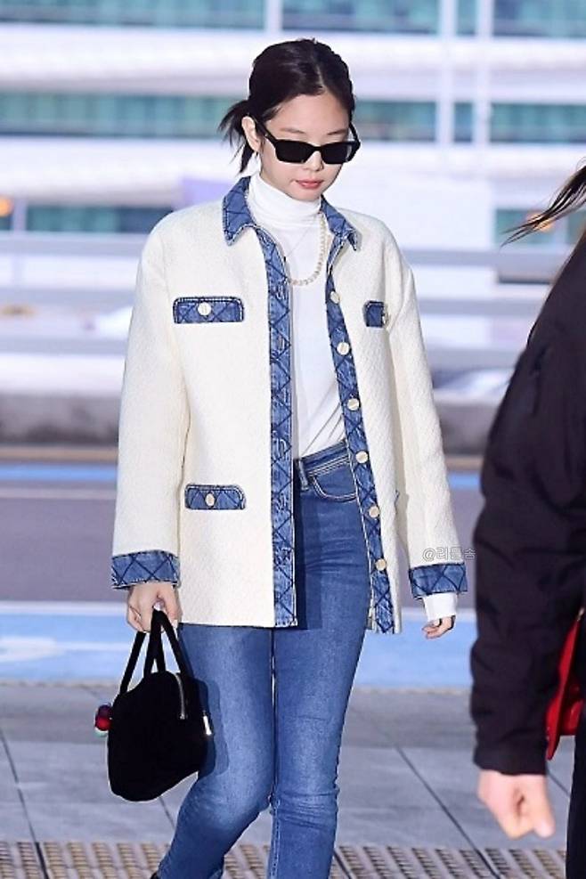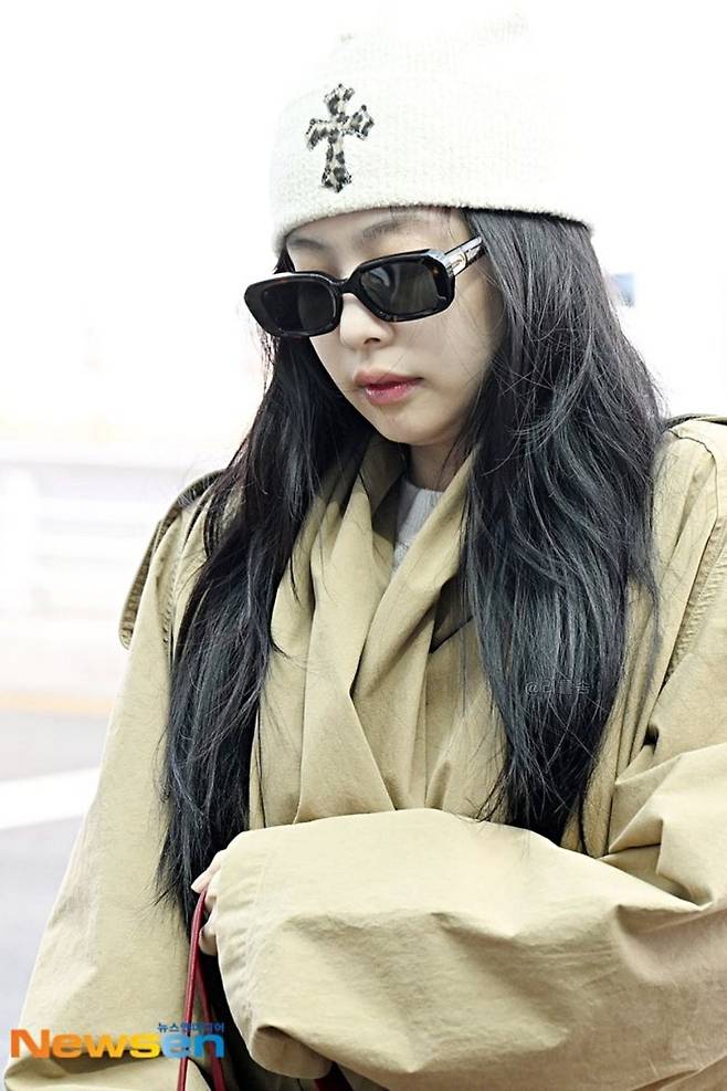 곰돌이 후드티에 데님 팬츠라는 지극히 평범할 수 있는 조합에 젠틀몬스터 블랙 선글라스 하나를 툭 걸쳤을 뿐인데, 꾸민 듯 안 꾸민 듯 시크한 무드가 폭발하는 것. 이것이 바로 제니와 젠틀몬스터가 만들어내는 완벽한 시너지입니다. 특히 얼굴을 반쯤 가리는 과감한 빅프레임은 얼굴을 작아 보이게 만드는 마법 같은 효과를 주기 때문에, 셀카를 찍든 실물로 보든 완벽한 비주얼을 완성해 줍니다.