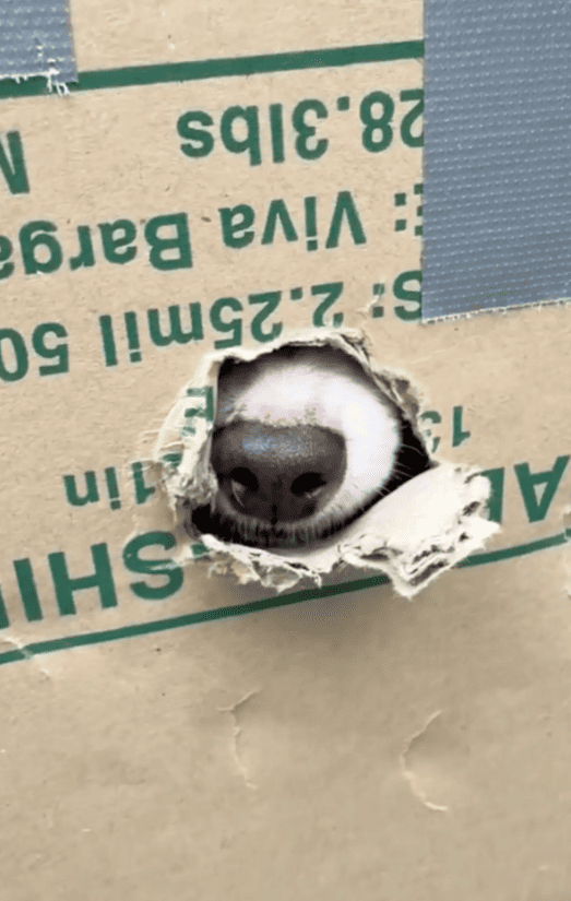 보호소에 들러 구조 사실을 알리려던 순간, 테이프로 단단히 봉해진 두 개의 골판지 상자를 든 사람이 다가왔습니다. 상자 옆면에는 작은 구멍이 나 있었고, 그 틈으로 조그만 하얀 코 하나가 삐죽 튀어나왔습니다. 단숨에 상황을 파악한 홀은 주저 없이 상자 쪽으로 달려갔습니다.