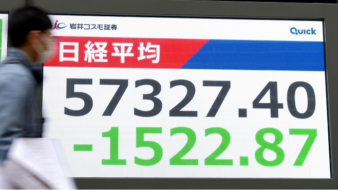 2일 일본 도쿄 증시의 닛케이225 지수는 장 초반 전 거래일 대비 1,500포인트 이상 하락하며 2.7%까지 낙폭을 키웠다.