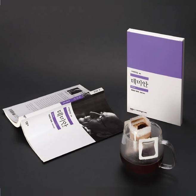 민음사에서 책 모양을 한 드립백 커피를 내놨다. 페이퍼라운지커피와 콜라보해 드립백 커피를 선보였다. 세계문학전집과 똑같이 생긴 패키지 상자에 스페셜티 원두 드립백 4개가 들어있다. <이방인>, <차라투스트라는 말했다>, <폭풍의 언덕>, <시지프 신화>, <데미안> 다섯 가지 패키지다. 한 상자에 9,500원으로 페이퍼라운지커피 민음사 북샵(https://tinyurl.com/ymm9n4rv)과 네이버 스마트 스토어(https://tinyurl.com/2ppj8bny)에서 구매할 수 있다.