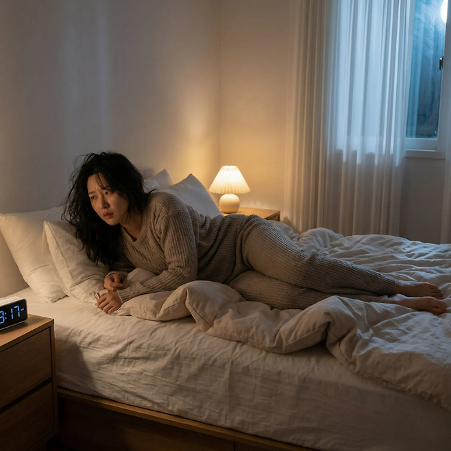 원래 코르티솔은 아침에 잠을 깨우기 위해 분비되어야 하는데, 밤늦게까지 업무 걱정이나 잡생각에 빠져 있으면 이 호르몬 수치가 떨어지지 않아 뇌가 계속 깨어 있게 됩니다. 잠자리에 누워 '내일 뭐 하지?'라는 고민을 멈추고 간단한 명상이나 복식 호흡을 통해 뇌에 "이제 안전해, 자도 돼"라는 신호를 보내야 합니다.