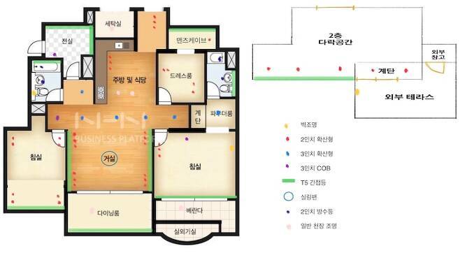 셀인은 조명 계획도 집주인이 알아서 해야 하는데요, 정해진 건 없고 가족들의 라이프 스타일을 생각해보시고 조명배치를 해보시면 되요. 저희 부부는 어둡게 사는 편이라 조명은 최소한으로 설치했고 다운라이트는 2인치, 3인치만 사용했습니다. 모든 공간에 메인등은 없고 오직 다운라이트와 간접조명, 포인트 조명만 설치했습니다. 모든 매립조명은 주백색 입니다.