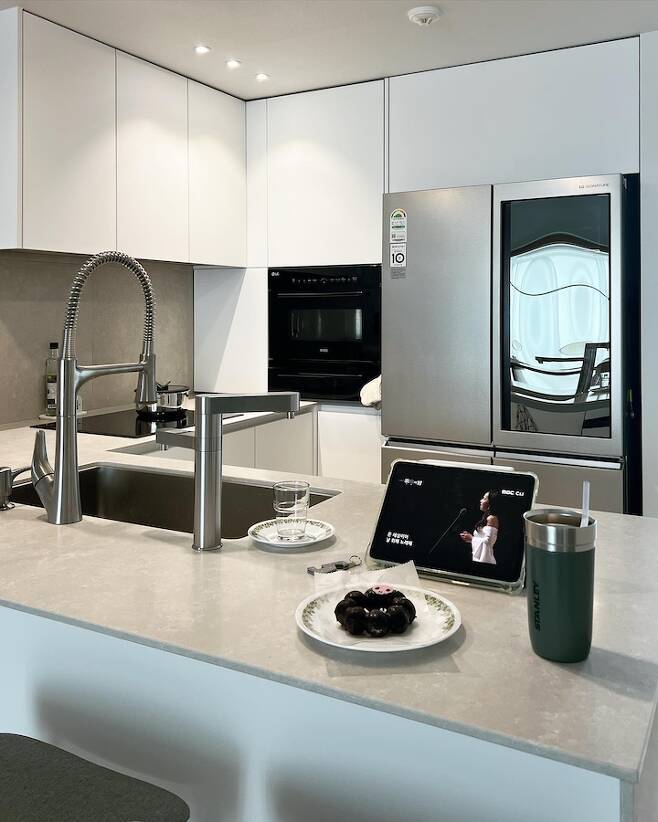 제가 가전을 사던 18년에는 오브제, 비스포크 같은 컬러 냉장고는 없었거니와, 저는 스테인레스 재질의 가전을 좋아해 엘지 시그니처 냉장고를 구매했었습니다. 하지만 요즘 트렌드는 가구와 일체감 있는 키친핏 냉장고인데 아직 4년 정도 된 멀쩡한 냉장고를 버리고 새 냉장고를 사기엔 너무 낭비 같아 결국 원래 쓰던 냉장고를 가져왔어요.