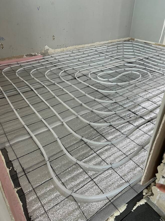 괜히 사서 걱정해서 큰 돈 쓰는 거 아닐까 했는데 관리사무소에 여쭤봤을 때 누수 공사 한 집들도 많고 교체 할 수 있으면 하는 게 좋다고 하셔서 교체를 하기로 했습니다. 철거 때 바닥을 까보니 이미 누수가 있었는지 교체한 흔적이 있어서 잘했다고 생각해요.