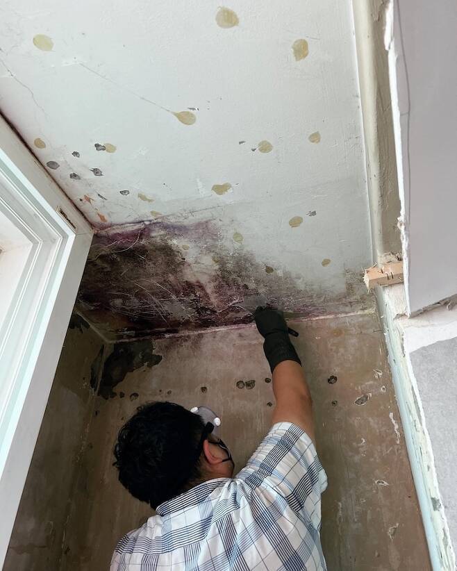 벽체 철거하고 나니 구석에서 발견된 곰팡이도 남편과 함께 셀프로 단열공정 전에 제거해줬어요.