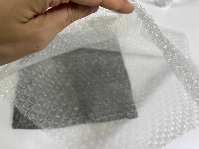 그럴 때는 이렇게 봉투 형태로 된 뽁뽁이를 활용해 보세요. 요즘은 그냥 펼쳐진 뽁뽁이 대신 이렇게 파우치 형태로 된 뽁뽁이도 많이 보이더라고요.